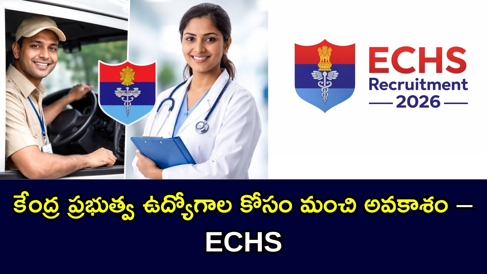 ECHS Recruitment 2026 ప్రభుత్వ ఉద్యోగం అనేది చాలామందికి ఒక స్థిరమైన భవిష్యత్తు. ముఖ్యంగా కేంద్ర ప్రభుత్వ ఉద్యోగం దొరికితే జీతంతో పాటు భద్రత, గౌరవం కూడా లభిస్తుంది. అలాంటి కేంద్ర ప్రభుత్వ ఉద్యోగాన్ని పొందేందుకు ఎదురుచూస్తున్న అభ్యర్థులకు ఇప్పుడు ఒక మంచి అవకాశం వచ్చింది. మాజీ సైనికుల కొందిరిబ్యూటరీ హెల్త్ స్కీమ్ (ECHS) ద్వారా 2026 సంవత్సరానికి సంబంధించిన కొత్త నియామక నోటిఫికేషన్ విడుదలైంది. ఈ నోటిఫికేషన్ ద్వారా బెంగళూరులో ఖాళీగా ఉన్న డ్రైవర్, మెడికల్ … Read more