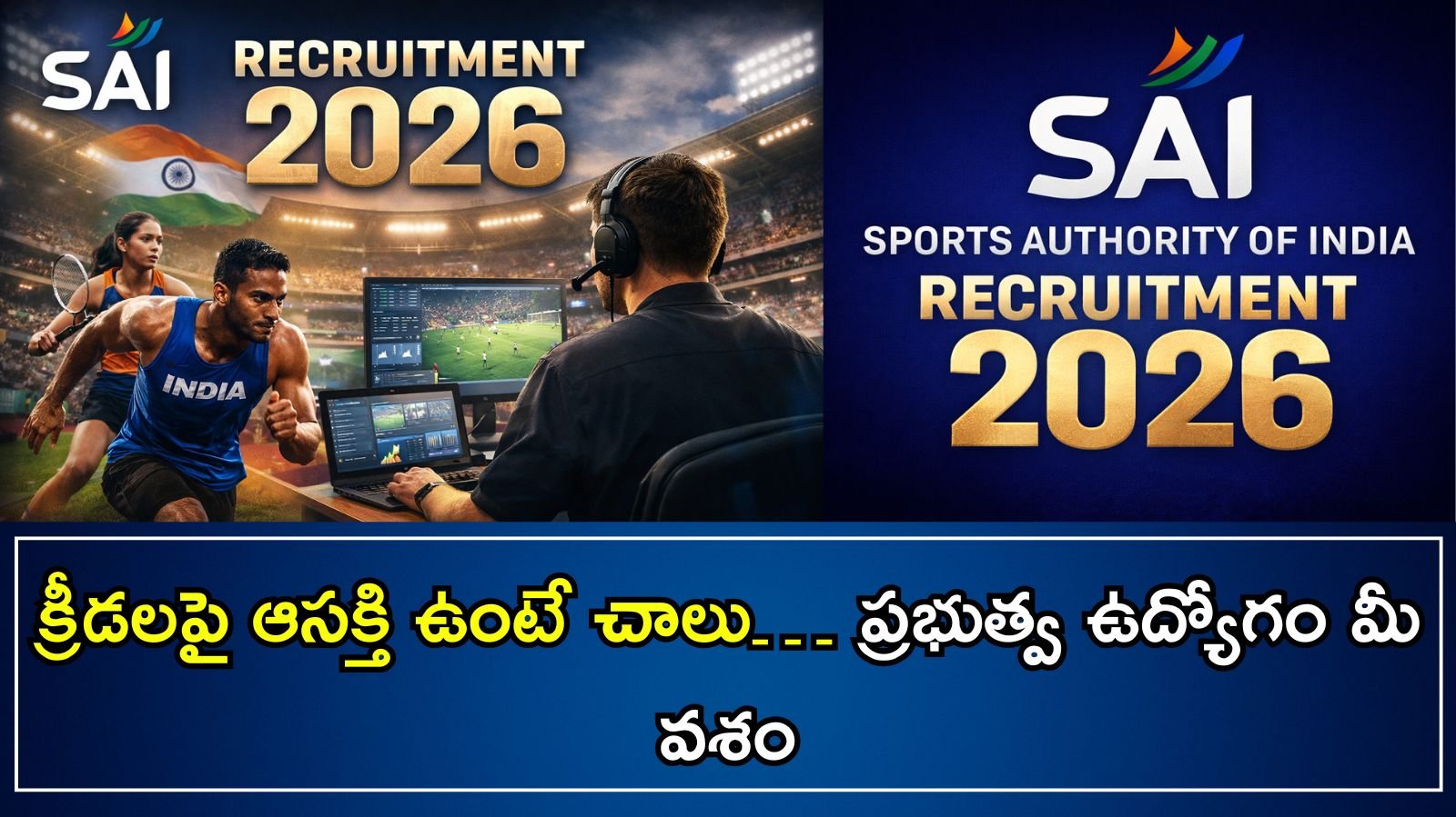 Sports Authority of India Recruitment 2026 క్రీడలను ప్రేమించే యువతకు, కేంద్ర ప్రభుత్వ ఉద్యోగం కోరుకునే అభ్యర్థులకు 2026 సంవత్సరంలో ఒక గొప్ప అవకాశాన్ని భారత ప్రభుత్వం తీసుకువచ్చింది. భారత ప్రభుత్వానికి చెందిన ప్రతిష్టాత్మక సంస్థ అయిన భారతీయ క్రీడా ప్రాధికార సంస్థ 2026 సంవత్సరానికి గాను అధికారికంగా నియామక నోటిఫికేషన్ విడుదల చేసింది. ఈ నియామకం ప్రత్యేకత ఏమిటంటే, ఇది కేవలం క్రీడాకారులకు మాత్రమే కాకుండా, క్రీడల పనితీరును విశ్లేషించే నిపుణులకు కూడా అవకాశం కల్పిస్తోంది. … Read more
